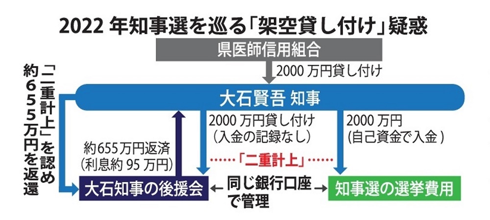 それとは別に郷原信郎弁護士と上脇博之教授は、大石氏の後援会の収支報告書と、選挙運動費用収支報告書において、2千万円が「架空貸し付け」されている疑いがあるとして、刑事告発していたのである。